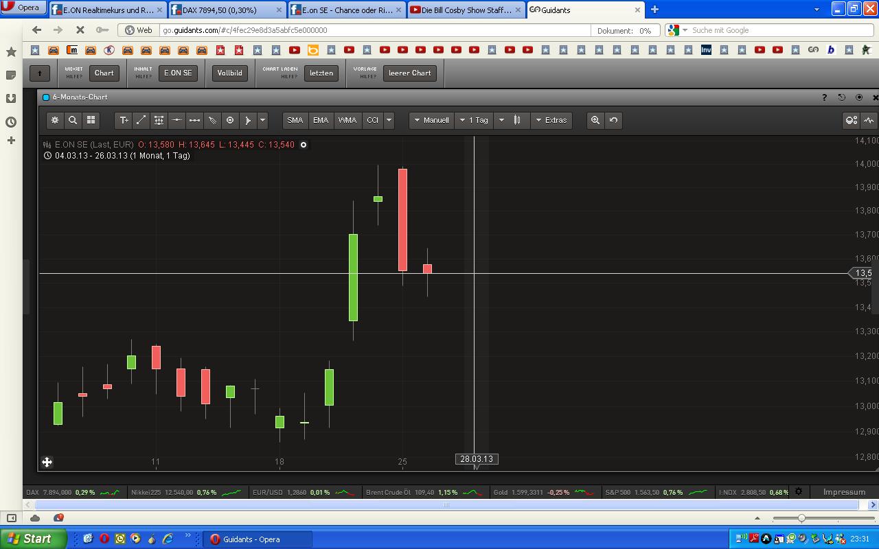 also ich hab nur guidants... und guck auch nur darauf... hab jetz nochmal nachgeschaut und hab da heute ne rote kerze ca nen halben cent unter der roten kerze von gestern... gestern 13,55 heute 13,54