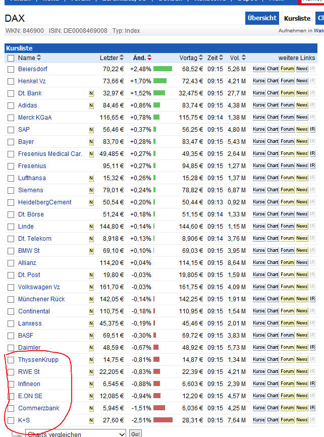 Heute vormittag hab ich gepostet, dass bei Lanxess die 10 er Schwelle von BR unterschritten wurde. Um 18 Uhr die Meldung, dass nun auch die 5 er unterschritten wurde. Der Wert steigt trotzdem. Da warte ab, was die vorhaben. Nix gutes verheißt es nicht, wenn BR innerhalb zwei Tagen mehr als 5 Prozent seiner Werte abbaut. Was ich die letzte Zeit so gemerkt habe ist, dass BR schon stark auf fundamentale Dinge schauen. Bauen bei den unterbewerteten, die auch nicht gut laufen auf und bei anderen wieder ab. Vllt ist die Coba wirklich unterbewertet. Denn da sind sie vorgestern oder so ziemlich dick rein. Mag auch an dem günstigen Kurs liegen. Heute kam ja eine Meldung, dass die Coba günstiger als die griechischen Banken ist. Dennoch würde ich keine Coba kaufen. Aber auch nur weil ich keine Banken kaufe und deren Bilanzen gar nicht zu verstehen versuche. Könnte interessant werden.