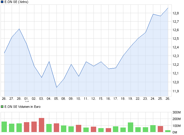 mit der deutschen post habe ich sehr gute gewinne erzielen können und kaufte mir paar eon aktien.. habe mir nicht viel dabei gedacht nur halt wenn sie fällt dann kann sie ruhig. hatte sie für 12.30 gekauft und jetzt ist sie schon bei 12.84 :D und habe so das gefühl wenn es so weiter geht wird die akie die post aktie übertreffen. würde mich freun wenn sie wieder bei 20€ wäre. nur jetzt die frage nachkaufen oder wird die eon aktie wieder fallen. eigentlich gibt es keine gründe das sie so steig :S