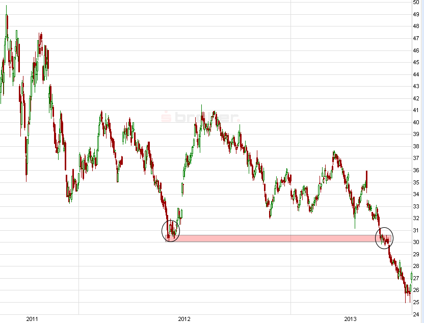 Den stattgefunden Kampf zwischen Bären und Bullen kann man im Chart gut sehen (Stand 1:1).