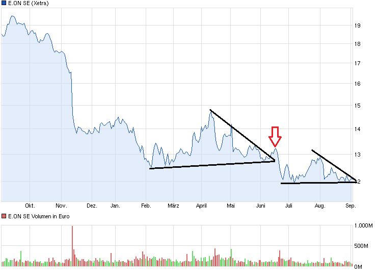 Bin eigentlich pro E.on, aber diese "Bodensuche" ist schon sehr zermürbend. Mir ist grad aufgefallen, dass sich die Formationen sehr ähneln und leider hatten wir beim letzten mal nen Fehlausbruch aus dem Dreick (roter Pfeil) und jetzt sind wir wieder an einem ähnlichen Punkt.