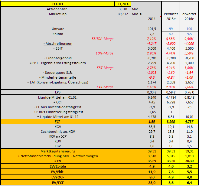 6) Kleine Sache, aber trotzdem ganz interessant: Effektiver Steuersatz lag 2014 bei 36,9% anstatt 31,5% im Vorjahr. Drückt natürlich auch das EPS.