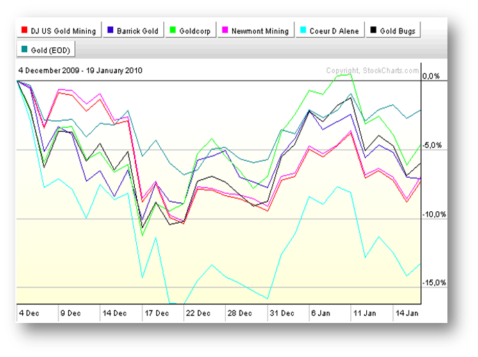 Wem auch der Griff in die normale „Aktienkiste“ noch nicht spekulativ genug erscheint, kann sich, statt auf große und mittlere Werte zu setzen, auch gleich auf eher kleinere und volatilere Explorationstitel fokussieren, die in den nächsten Jahren ein noch größeres Entwicklungspotential versprechen. ERA-Gründer Ullmann sieht gerade 2010 in diesem Segment noch deutliche Aufholchancen gegenüber etablierteren Werten voraus. Ein Blick auf die 12-Monats-Entwicklung des Junior Gold Miners Strategie-Zertifikates der RBS (AA0AHA), das gegenwärtig 20 Aktien aus dem Bereich Exploration und Junior Goldminen abbildet, zeigt allerdings schon jetzt eine beachtliche Frühform der Nachwuchstitel. So konnte das Produkt gegenüber den angesprochenen Gold- und Goldminen-Trackern in nur einem Jahr mit einem Zugewinn von über 127 Prozent glänzen. Allerdings konnte wiederum in den vergangenen sechs Monaten zumindest gegenüber dem Papier auf den HUI keine Outperformance mehr erzielt werden, was aber wiederum dessen starke kurzfristige Entwicklung unterstreicht. Weiteres Potential bei Zweit- und Drittwerten, die erst am Anfang ihres Produktionszyklus stehen, scheint deshalb tatsächlich vorhanden zu sein. Das RBS-Papier muss dabei ohne eine zusätzliche Währungsabsicherung auskommen, was im vergangenen Halbjahr wohl auch zu einem gewissen Nachteil gegenüber dem Quanto-Gold-Bugs-Produkt führte.