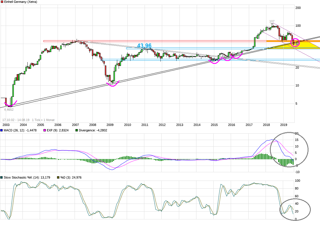 Tagestief auf Xetra heute bei 44,10. Ging ja heute schneller als gedacht an diese horizontale 43/44er Marke. Wäre zu hoffen, daß hier wenigstens mal etwas die Bremsseile greifen bis man mehr Erkenntnisse hat wie Hj.2 wirklich läuft. Wäre eigentlich schön, wenn sich der Einhell-CEO/CFO mal irgendwo in einem Interview etwas ausführlicher auslassen würden über die Lage , Perspektive und Magerndruck. Das bisher geäußerte war sehr wenig. Gerade für solche kleinen Werte ist genügend Kapitalmarkt-Kommunikation wichtig. Besonders in Phasen wo es nicht so gut läuft und Anleger verunsichert sind.