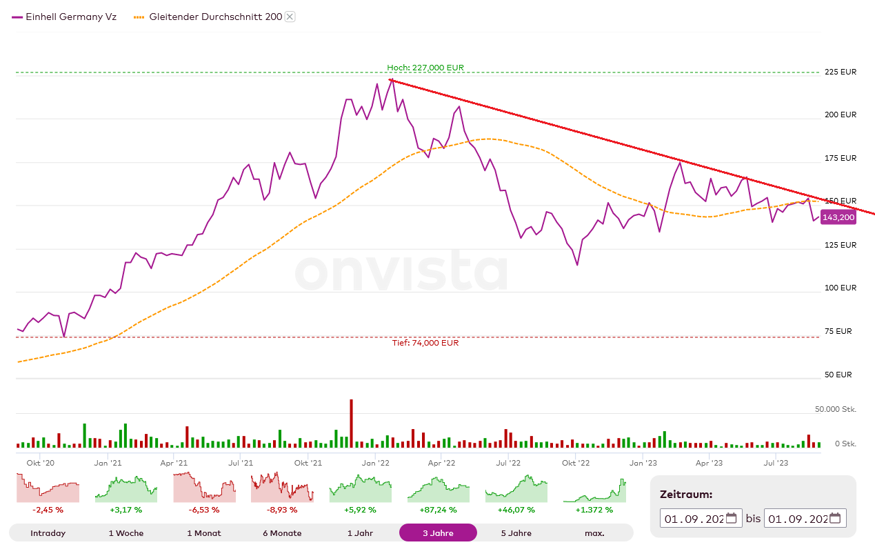 Und Einhell kann darüber hinaus natürlich wieder wachsen, sei es durch regionale Ausweitung oder auch durch größere Produktpalette. Auch beim Preis sollte man gut aufgestellt sein, da man ja jeher günstiger als die Konkurrenz war, und es so leichter sein dürfte Inflation weiterzugeben.