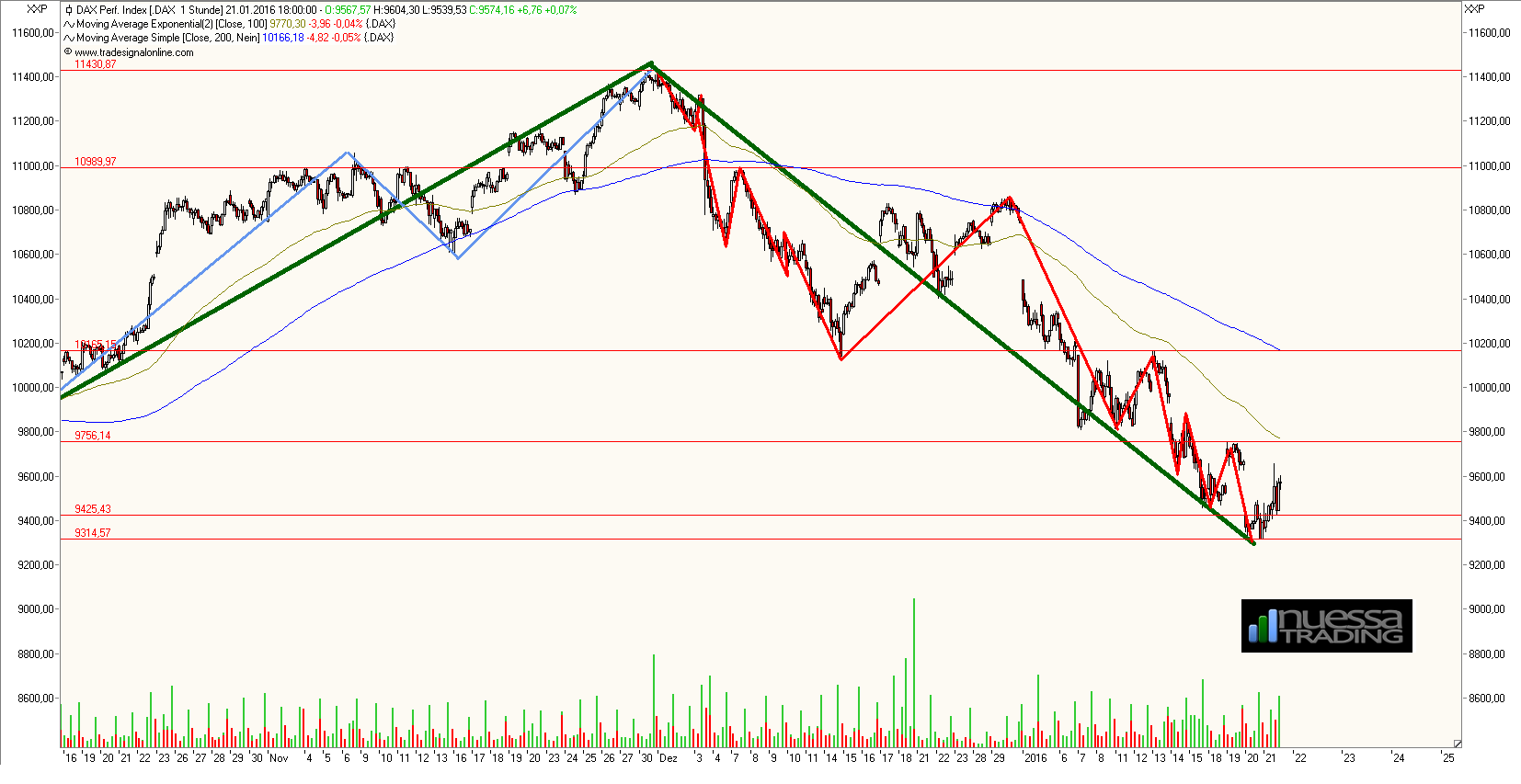 Meine Longposition im Dax konnte ich zur Hälfte mit kleinem Gewinn schließen, die andere Hälfte wurde ausgestoppt. Alles im allen ein +/- 0 Geschäft.