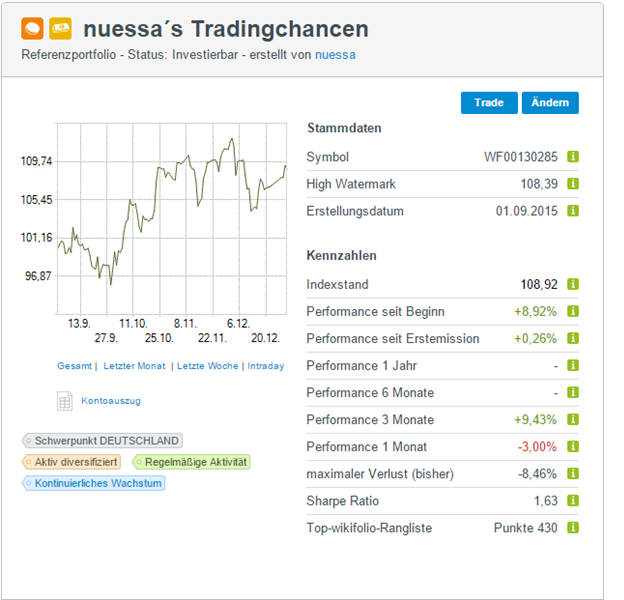 Performance Wikifolio seit Auflage am 01.09.2015 = 4,2%
