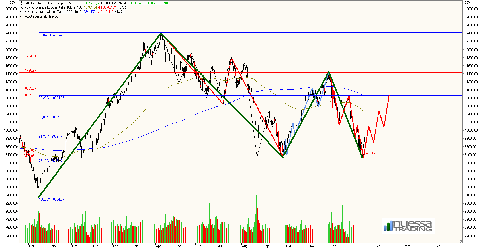 Seit April wird dieser Trend in der Regression entsprechend korrigiert.  Das damit verbundene bisherige Verlaufstief datiert vom September 2015 bei ca. 9300 Punkten.