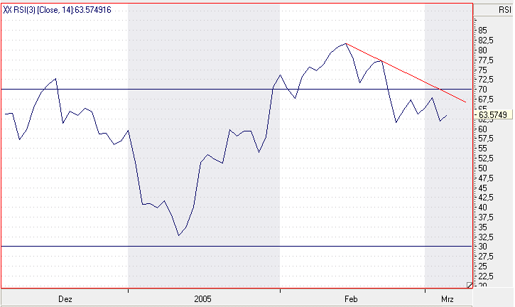 Der Kurs ist danach deutlich zurückgekommen. Was zunächst einmal für die long Seite spricht. Von der Indikatorenseite spricht jedoch einiges für die Fortesetzung der Kursabschwächung in den nächsten Tagen.