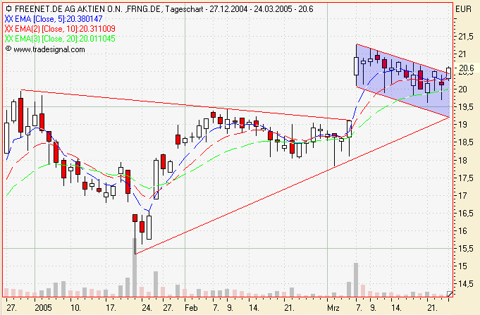 das kann in beide richtungen laufen. long bis 20,80 ist zunächst ebenso drin wie ein fall runter bis 19. würde die nächste kerze als bestätigung der letzten abwarten. unter 20 würde ich aber auf das short-szenario setzen