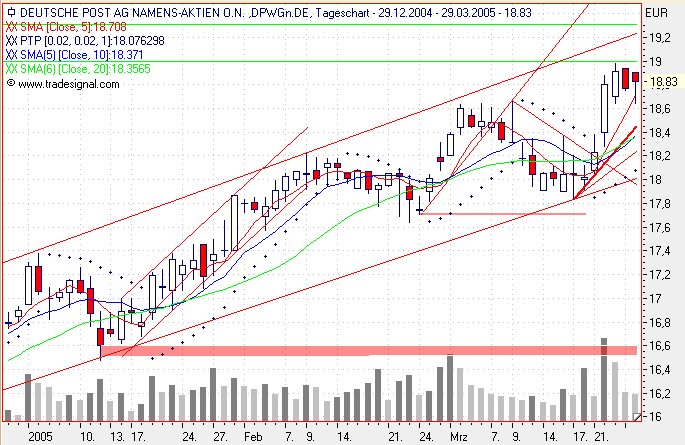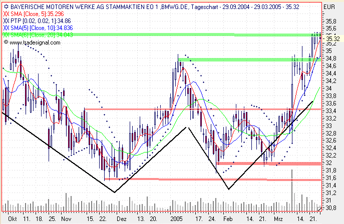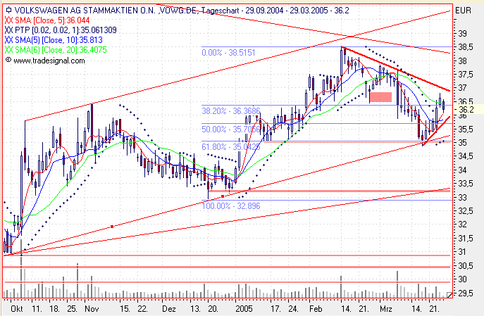 Die Aktie befindet sich in einem Aufwärtstrend. Es kann von einer weiterhin positiven Entwicklung im Rahmen des Trendkanals ausgegangen werden. Bewegt sich in einer Rechteck-Formation zwischen Unterstützung bei 35.24 und Widerstand bei 39.25. Ein etablierter Bruch eines dieser Levels wird die weitere Richtung des Kurses anzeigen. Hat aufgrund eines Durchbruchs des Widerstandslevels nach oben hin bei 35.27 ein Kaufsignal von einer Schulter-Kopf-Schulter-Umkehrformation generiert. Ein weiterer Anstieg auf 43.19 oder höher ist angezeigt. Die Aktie hat den Widerstand bei ca. 36.20 euro nach oben durchbrochen. Damit wird eine weitere Aufwärtsbewegung signalisiert, und es besteht nun bei Gegenreaktionen eine Unterstützung bei 36.20 euro. Die Aktie gilt insgesamt als technisch positiv auf mittlere Sicht.