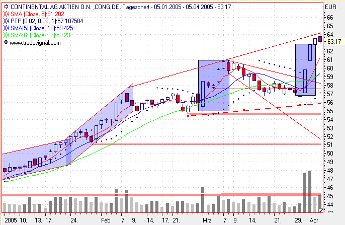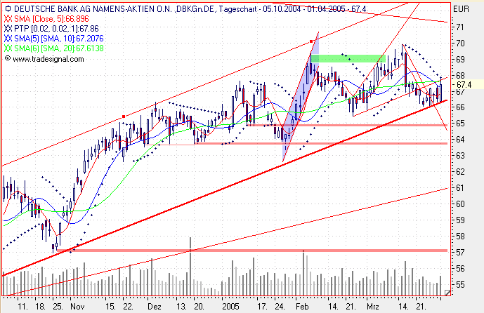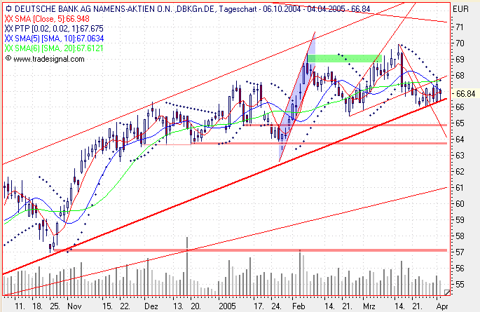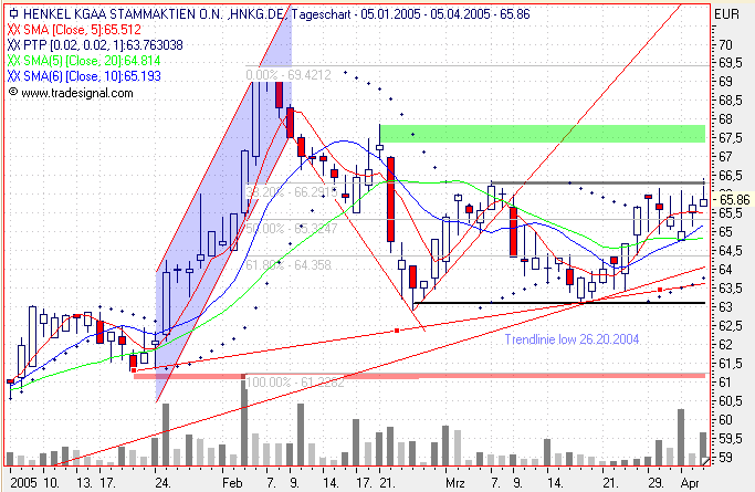 Sehe das nächste Ziel eher auf der Unterseite 63,1. Vielleicht zunächst Ausbildung einer Tradingrange 63,1 - 66,5.