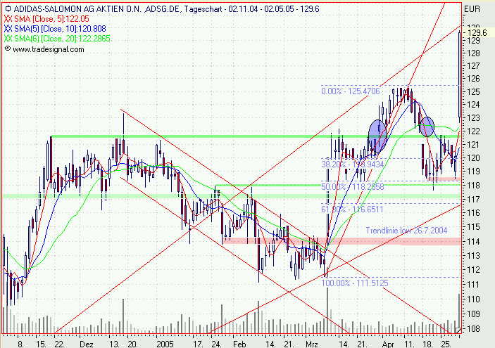 Die Aktie von adidas-Salomon gewinnt aktuell 6,58 Prozent auf 128,00 Euro.