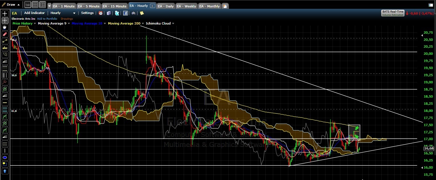 Fundamental sehe ich bei EA klar einen Aufwärtstrend. Die hohen Kosten durch eine Übernahmewelle der letzten 10 Jahre scheinen langsam Früchte zu tragen. Das die Schulden aber nicht nach einem Jährchen nicht weck sind ist auch klar wenn man sich quasi die gesamte Konkurrenz einverleibt.