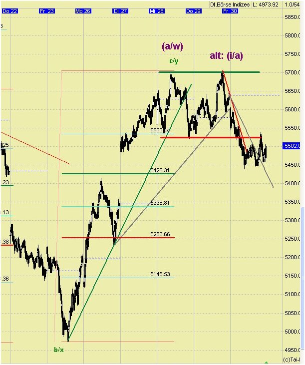 und als seine neue Marschrichtung raus kam ( lautete: runter bis 54xx und dann rauf auf ca. 5800 ) der erste Teil war ja richtig , der zweite Teil wieder mal ein Griff ins Clo