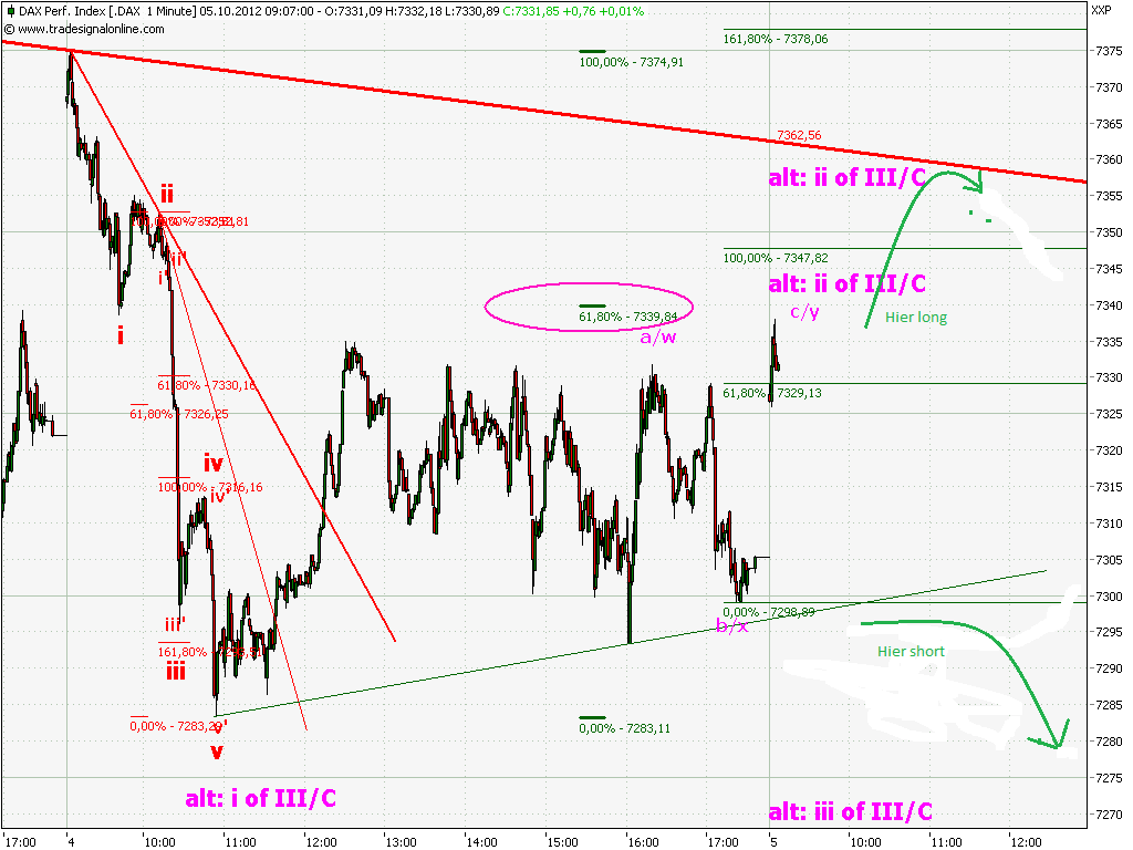 Das mit dem Gap-Close: Es ist ein unechtes Gap. Zu den Preisen im Gap wurde gestern ziemlich intensiv gehandelt und obendrein hat sich um 7330 auch noch ein ziemlich sichtbarer Widerstand gebildet. Und wenn alle diese Widerstände sehen, dann ist es nur eine Frage der Zeit, bis dieser gebrochen wird.