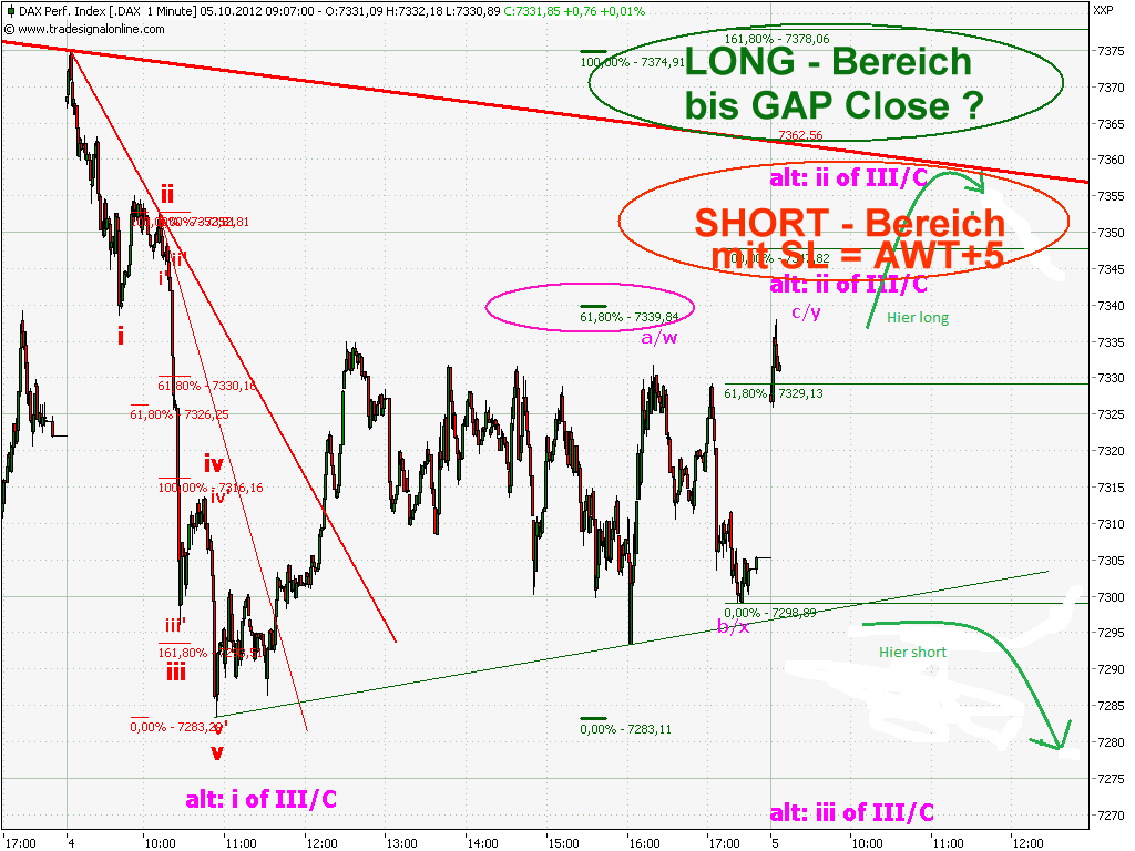 MKZ hat auch in folgendem Punkt recht, dass sich ein Aushandeln der Punkte zwischen 61,8er fibo und AWT auch nicht recht "lohnt"..... Dann vielleicht doch erst besser warten, bis der DAX-Chart ÜBER der "Dicken Roten", der AWT ist - und dann wird wahrscheinlich auch Dein Gap geschlossen werden...
