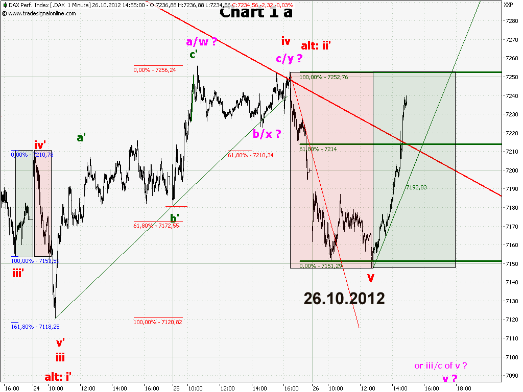 Wenn der Chart des DAX jedoch per Wochenschluss - und somit nachhaltig über jener MoB/ MKZ liegen sollte - also nach EW und CT auch oberhalb Abwärtstrend (rote Linie bei MKZ / Dax Chart) und das Jahreshoch 2012 , dann sieht es für Short (kurzfristig) aus meiner Sicht nicht gut aus...