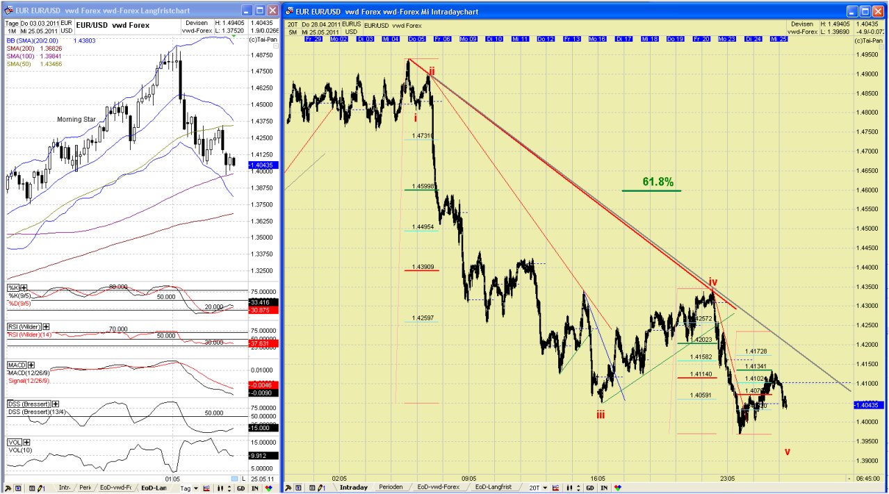 Für mich persönlich werde ich mal den neuen Forex-Brief von MyTrade ausprobieren. Die arbeiten wie ich weiß vollkommen ohne technische Analyse. Ein Test ist es mir jedenfalls mal Wert. Meine Erfahrung mit deren Powerletter sind ausgezeichnet. Sind aber alles Optionsscheine und Zertis die dort umgesetzt werden. Nach meiner Forex-Testphase werde ich Euch mal berichten wie es läuft. Ansonsten komme ich gerne zu der Wellen-Theorie zurück - aber dann nur unter fachmännischer Anleitung.
