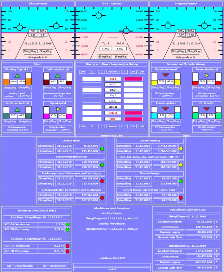 Bilanzratingnote: Die Bilanzratingnote hat sich von 3,17 auf 3,18 unmerklich verändert. Welche Faktoren (Kennzahlen) dazu beigetragen haben, kann an der Divergenzdarstellung abgelesen werden.