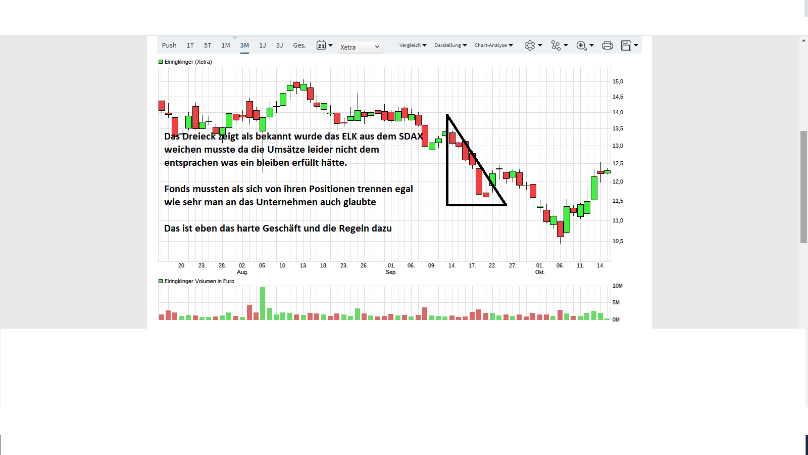 im Septmber musste ELK den SDAX verlassen, deswegen der Fall von fast 14 Euro auf 11,50 Euro.
