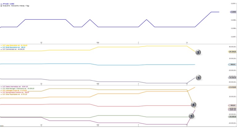 Nun schau mal auf deinen Chart, wenn der Preis faellt, steigt der SSI Wert der Retail-Trader. Und warum?, ja genau, er laesst seine Verlustposi laufen und vergroessert sie immer weiter. Darum ein steigender SSI Wert bei fallenden Kursen, Versus bei steigenden Preisen.