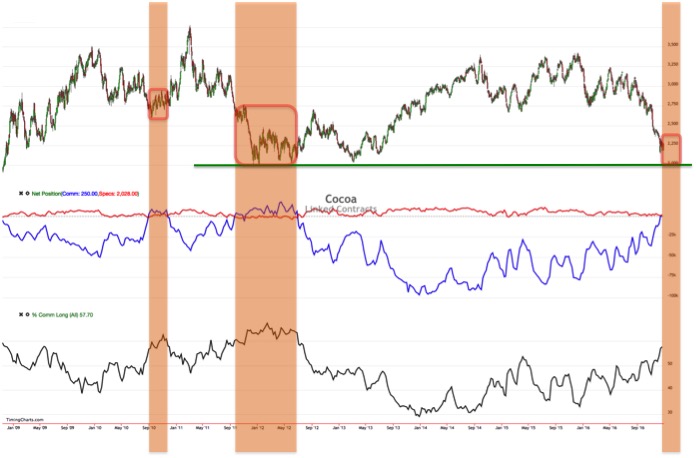 So lieber Armitage, jetzt zum eigentlichen Teil, warum hab ich den Arabica grad jetzt gekauft, obwohl wir noch kein extrem bei den Commercial netto haben?