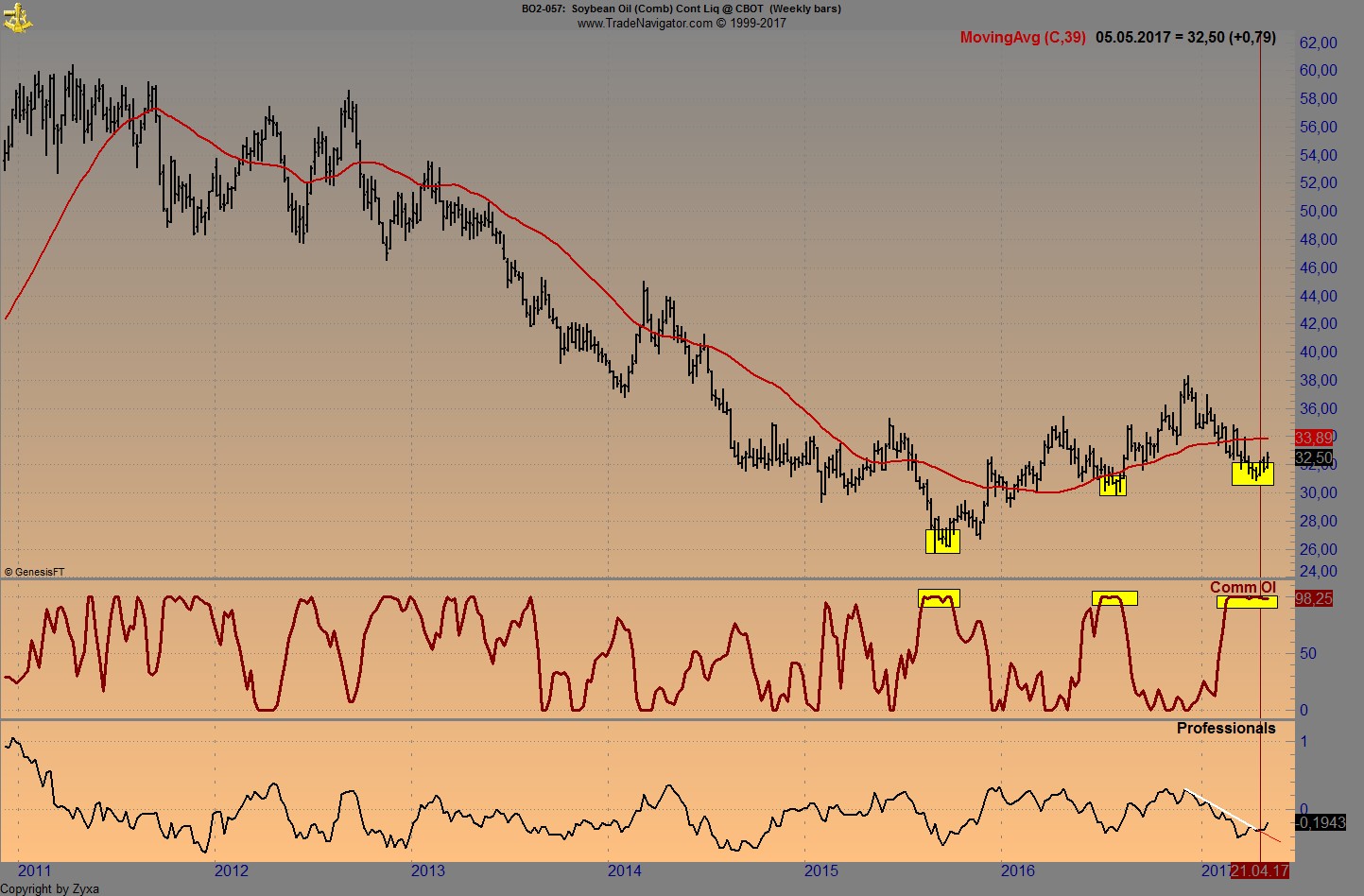 Jetzt kommen wir zum 2.ten Teil....wann steige ich nun ein, wenn beides Erfüllt ist...also Comm OI 100 und der Small Spread ordentlich im grünen Bereich....so wie vor kurzem am 24. April