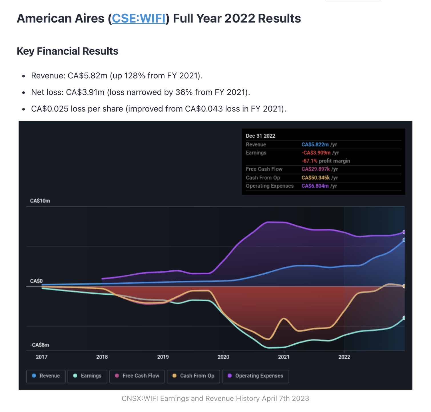 Toronto, Ontario--(Newsfile Corp. - June 15, 2023) - American Aires Inc. (CSE: WIFI) (OTCQB: AAIRF) ("Aires" or the "Company"), a leader in scientifically-proven EMF modulation technology, announces a proposed non-brokered private placement (the "Offering") for gross proceeds of up to $3,000,000 through the issuance of up to 3,000 units (the "Units") at a price of $1,000 per Unit. Each Unit shall consist of (i) one (1) $1,000 principal amount secured convertible debenture (a "Debenture" or "Debentures") of the Company, and (ii) and 20,000 common share purchase warrants (the "Warrants"). The Debentures shall bear interest at a rate of 12.0% per annum, payable semi-annually in arrears on the last day of June and December in each year, with the first interest payment payable on June 30, 2023, and mature on June 30, 2025 (the "Maturity Date"). The Debentures will be convertible into common shares in the capital of the Company (the "Common Shares") at the market price of the Common Shares at the time of conversion, subject to the approval of the Canadian Securities Exchange (the "CSE") in the event such price is below $0.05, determined by the most recent closing price of the Common Shares on the day of conversion, at the option of the holder at any time prior to the close of business on the earlier of: (i) the last business day immediately preceding the Maturity Date, and (ii) the date fixed for redemption. Each Warrant shall entitle the holder thereof to acquire one Common Share at an exercise price of $0.05 until June 30, 2025. In addition, the Debentures are secured by all of the assets of the Company.