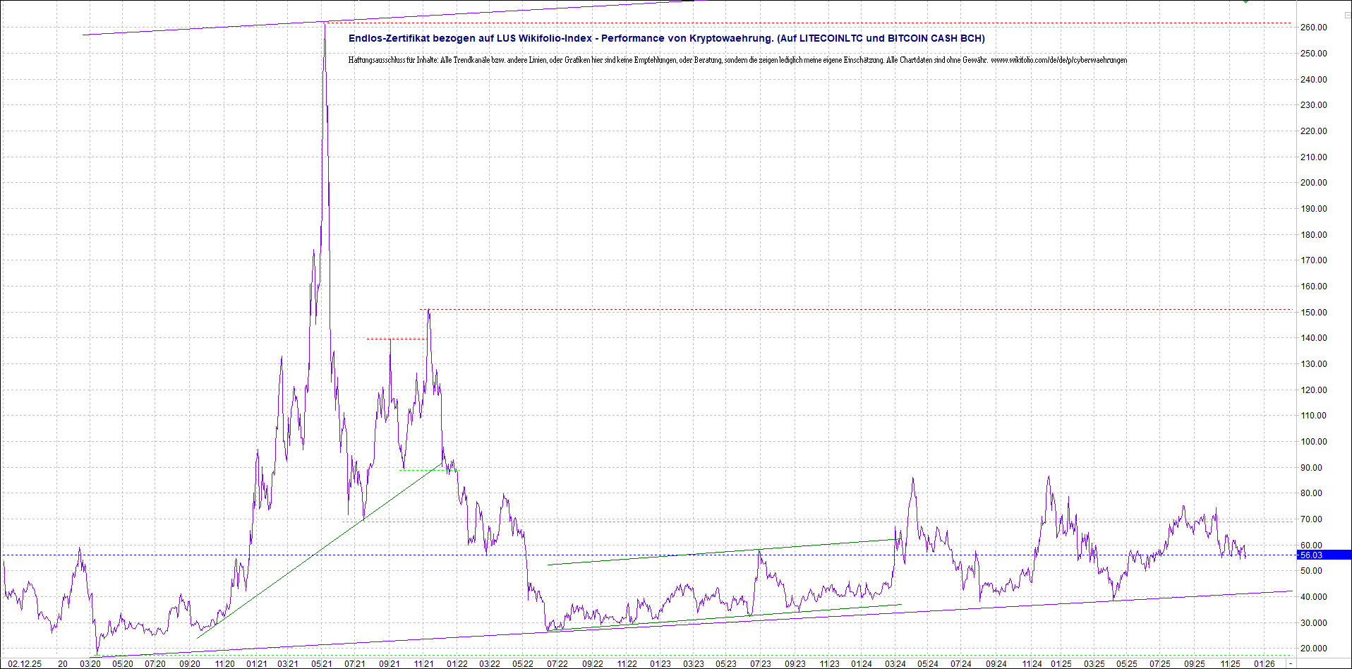 Damit sind ab jetzt, die vier bei wikifolio zur Verfügung stehenden performancen von: BITCOIN (BTC), ETHEREUM (ETH), RIPPLE (XRP) und LITECOIN (LTC), zusammen nachgebildet und gebündelt an den geregelten Börsen für Anleger als ein 1:1 wikifolio-Endlos-Indexzertifikat ab sofort zugänglich. Der Handel ist auch außerbörslich möglich.