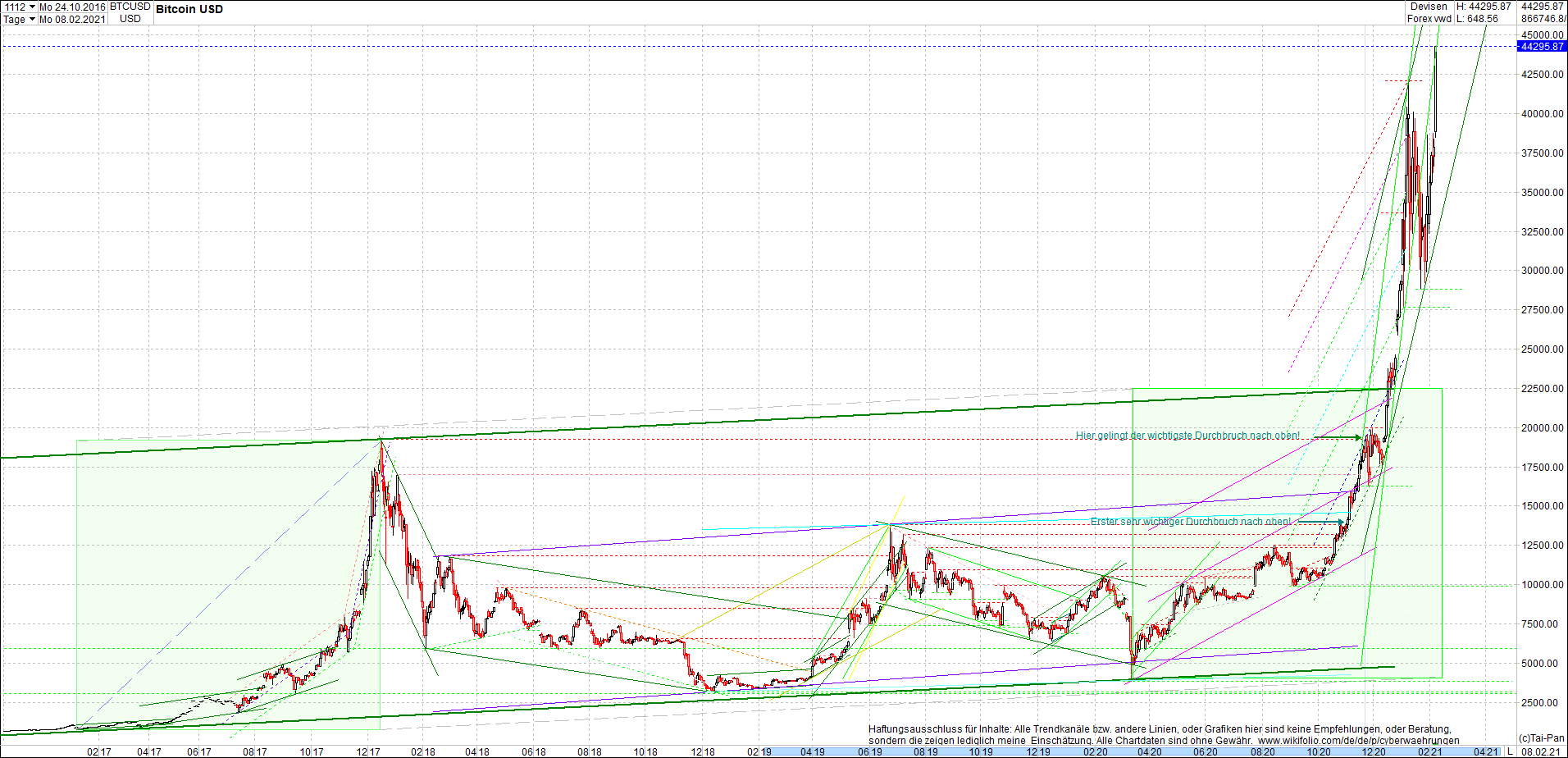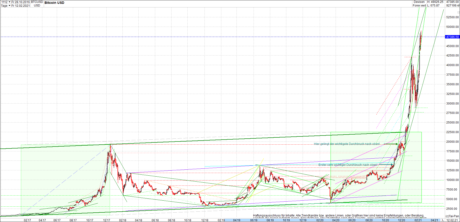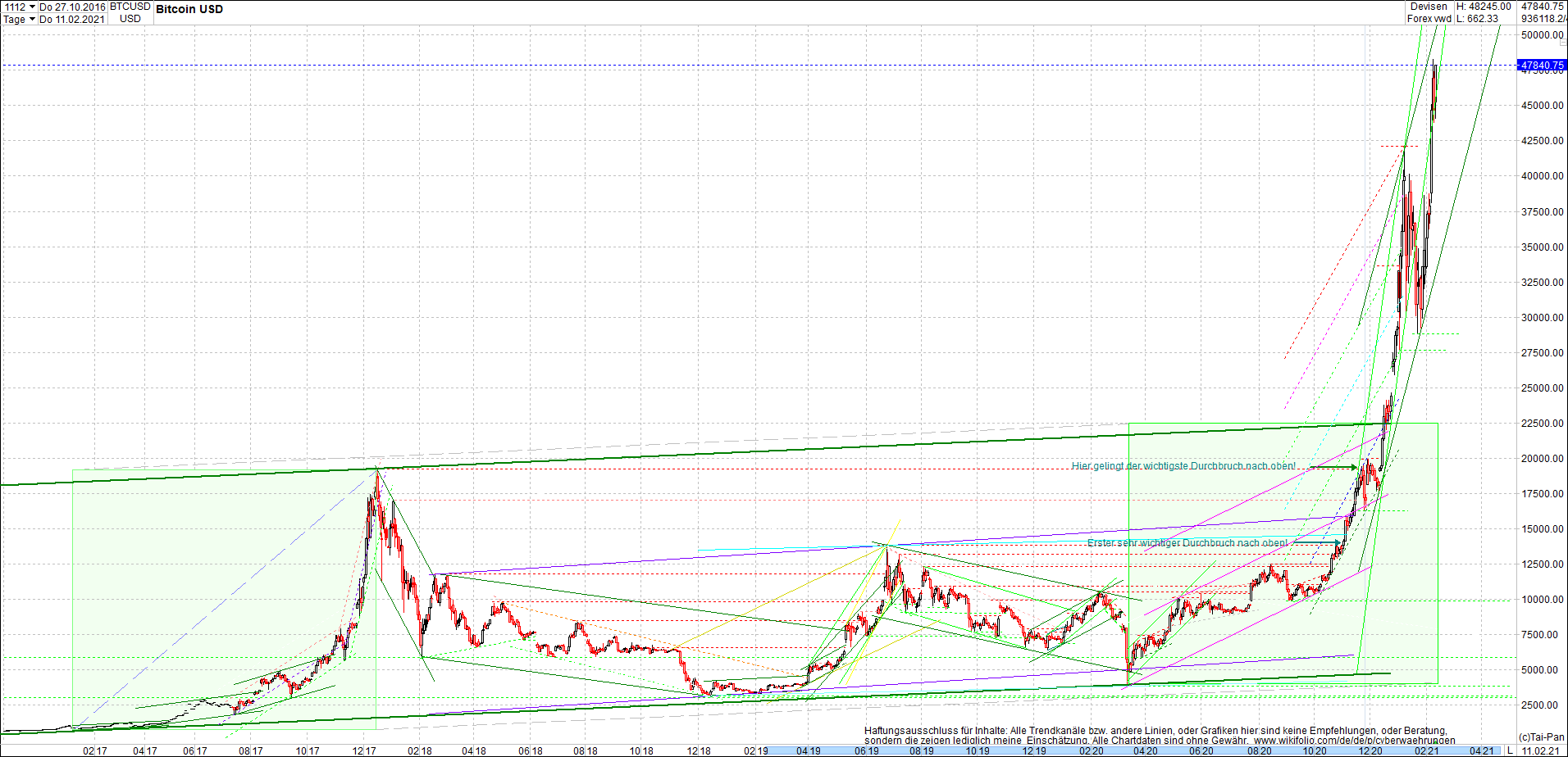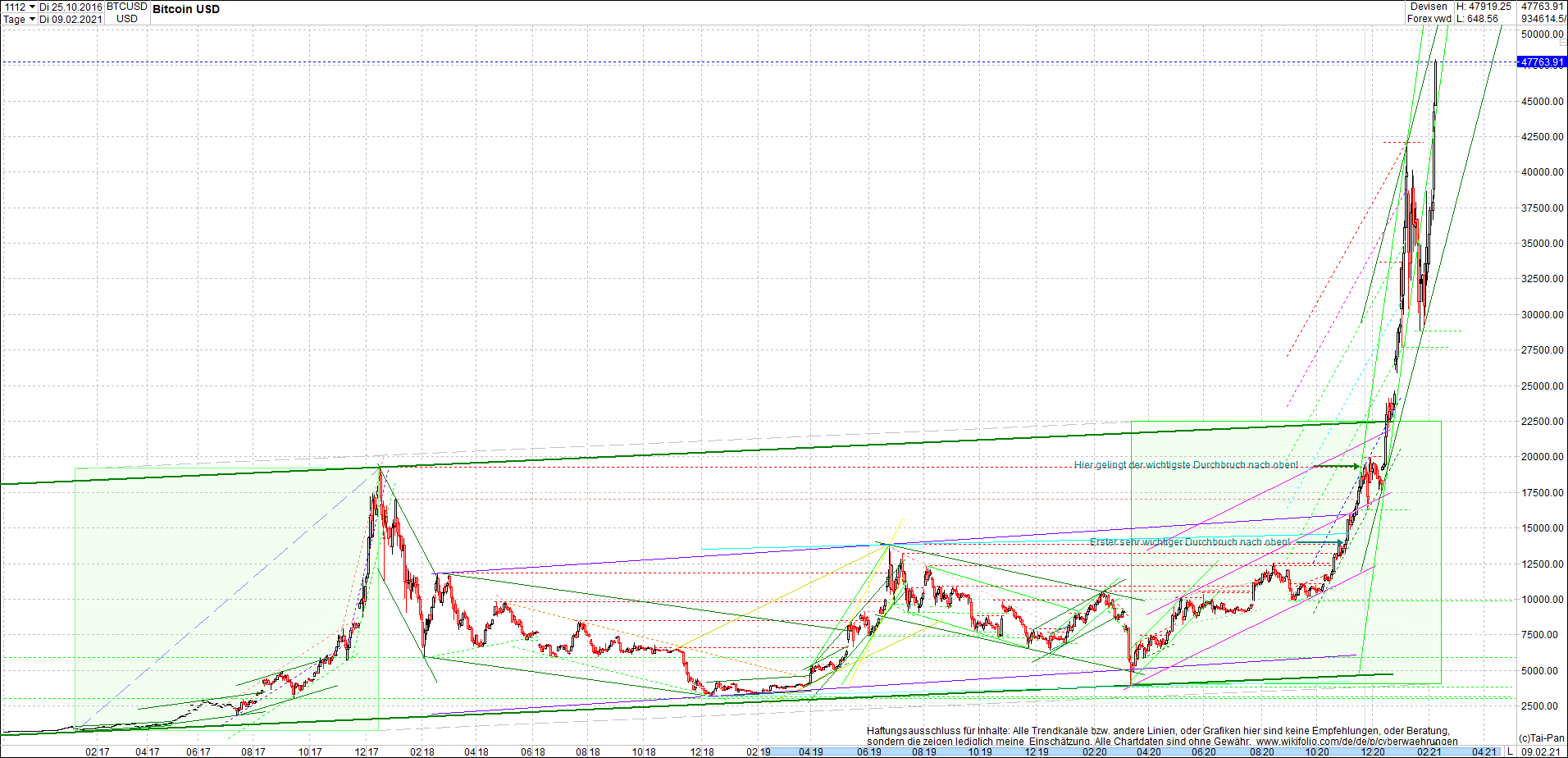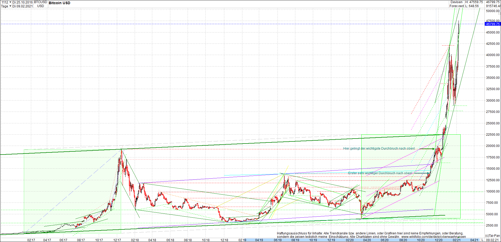 BITCOIN / BTC Chart heute, sehr langfristig.