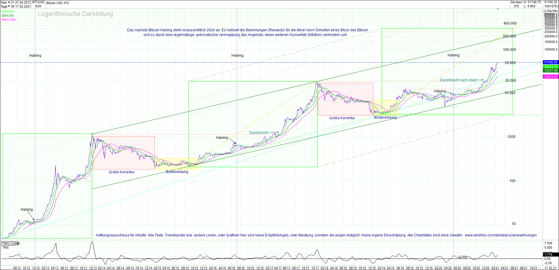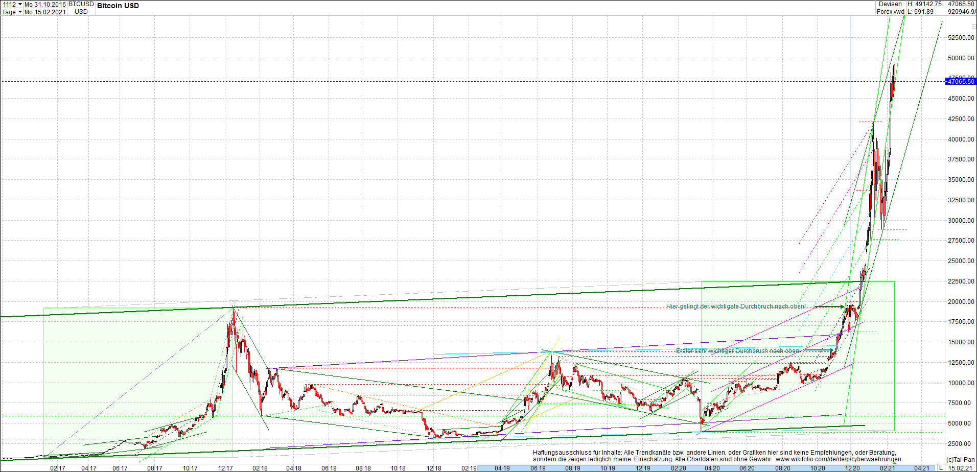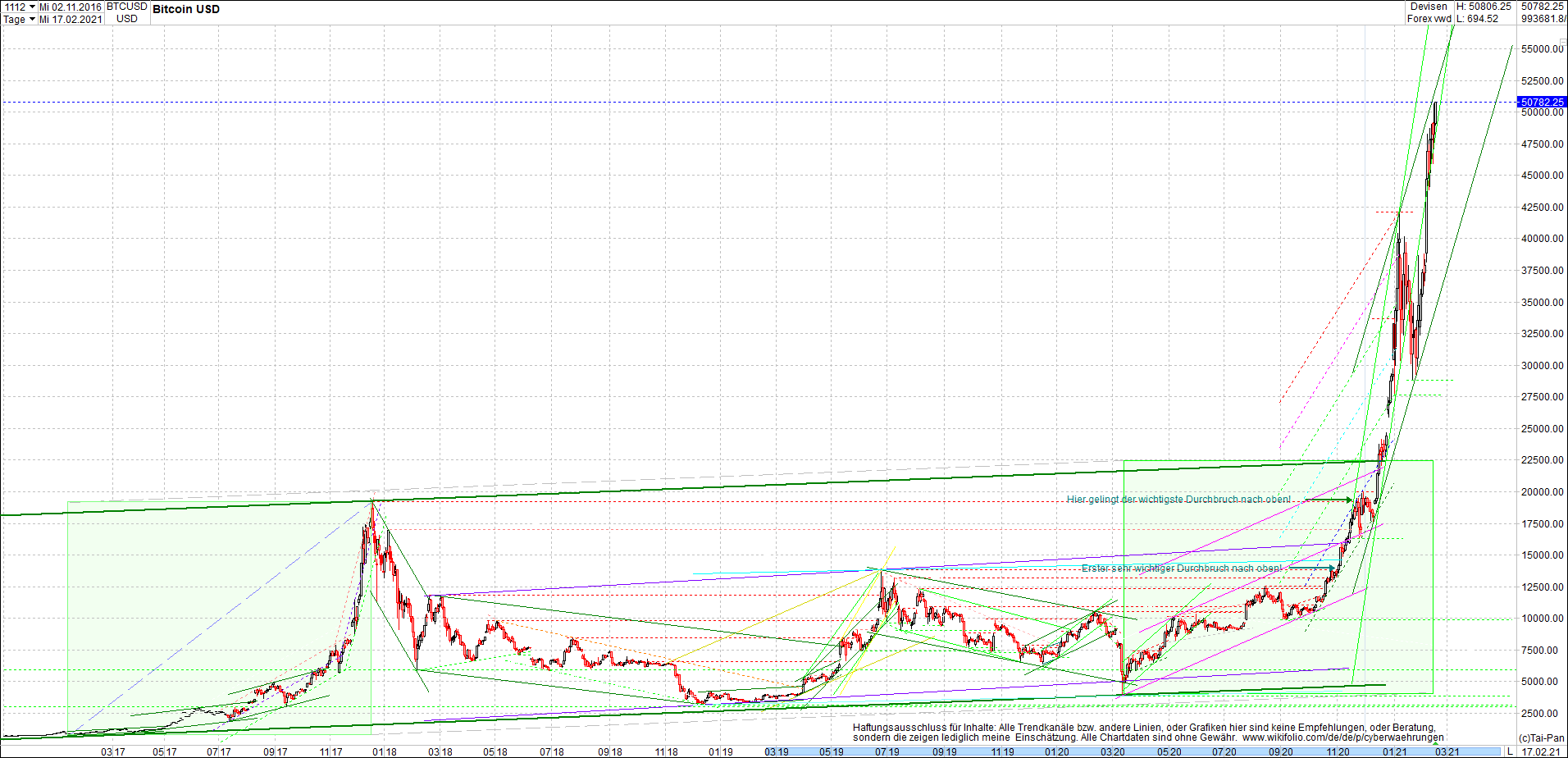 BITCOIN / BTC Chart heute, sehr langfristig.