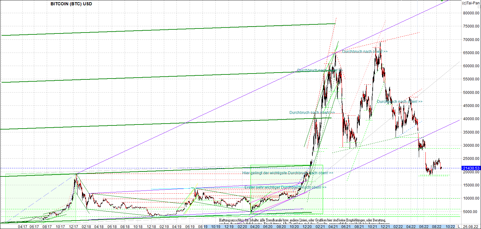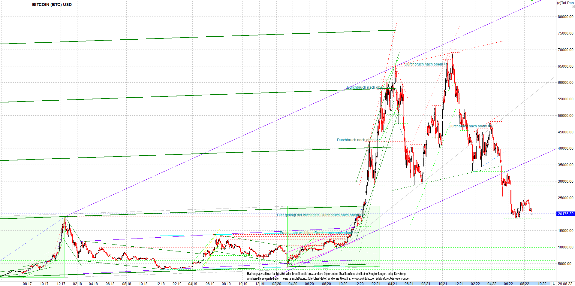 BITCOIN / BTC Chart heute, sehr langfristig.