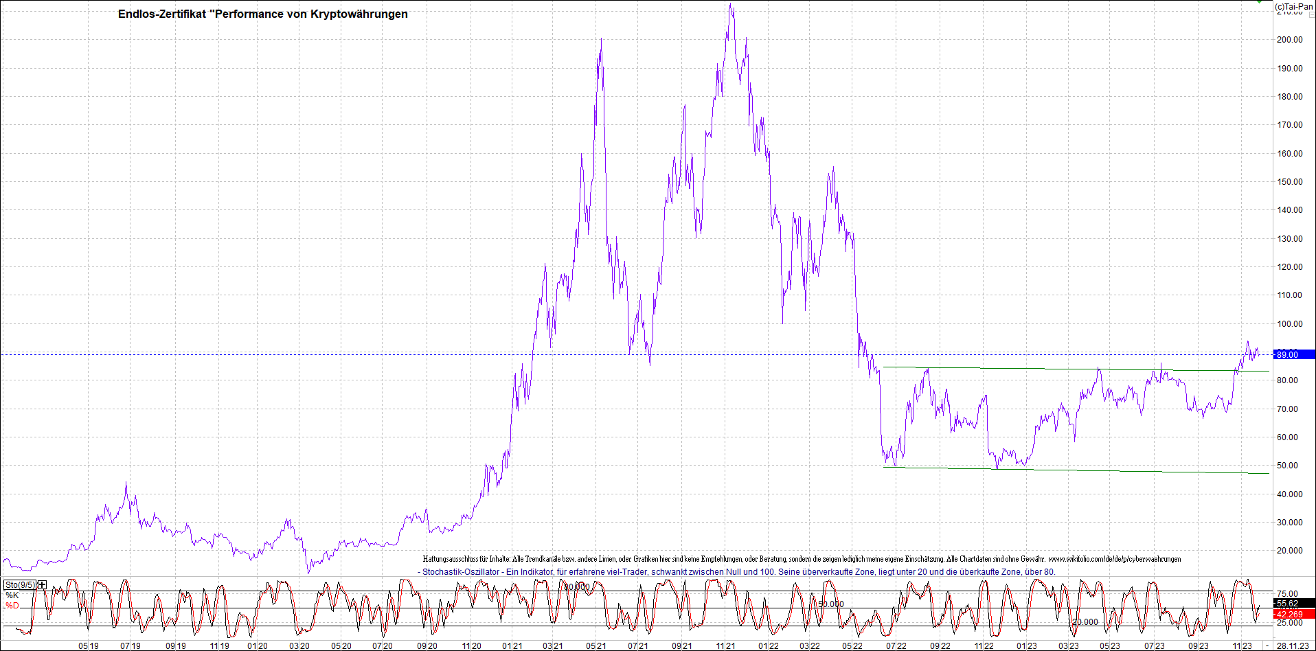 Zertifikat - Performance von Kryptowährungen.