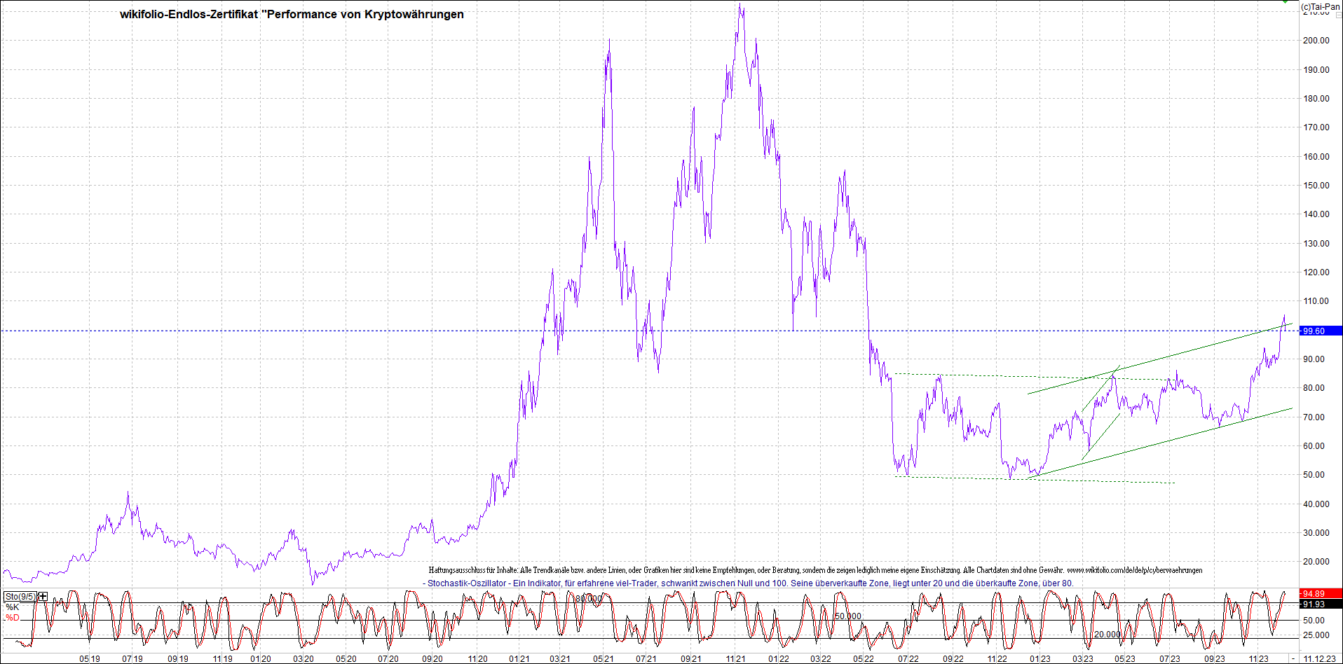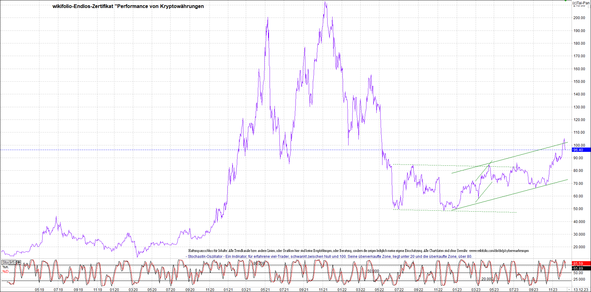 Zertifikat - Performance von Kryptowährungen.
