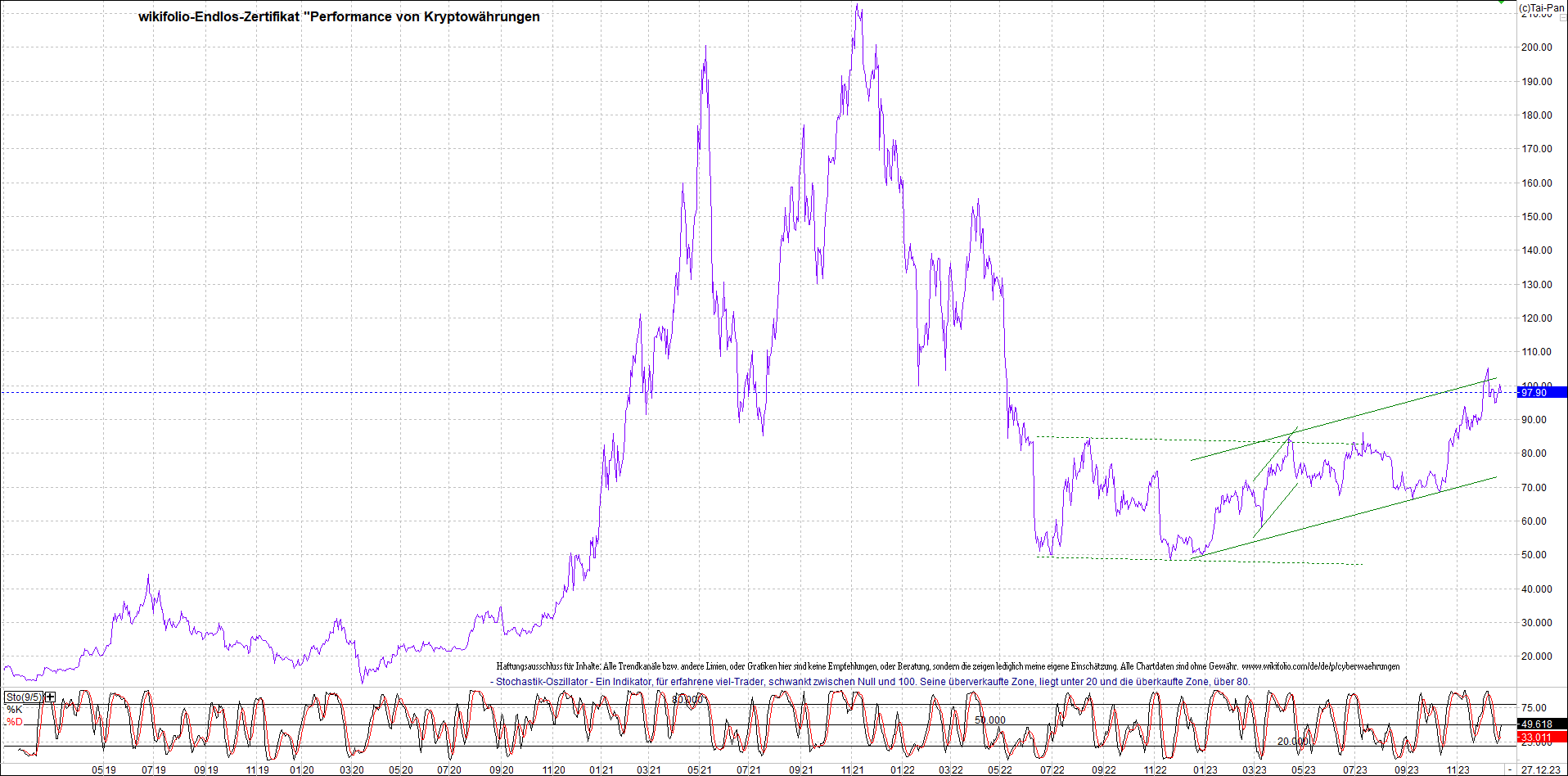 Zertifikat - Performance von Kryptowährungen.