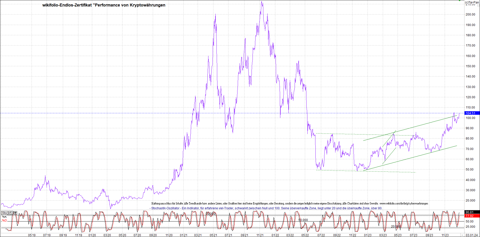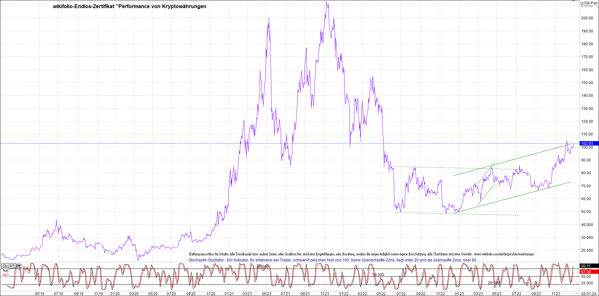 Zertifikat - Performance von Kryptowährungen.