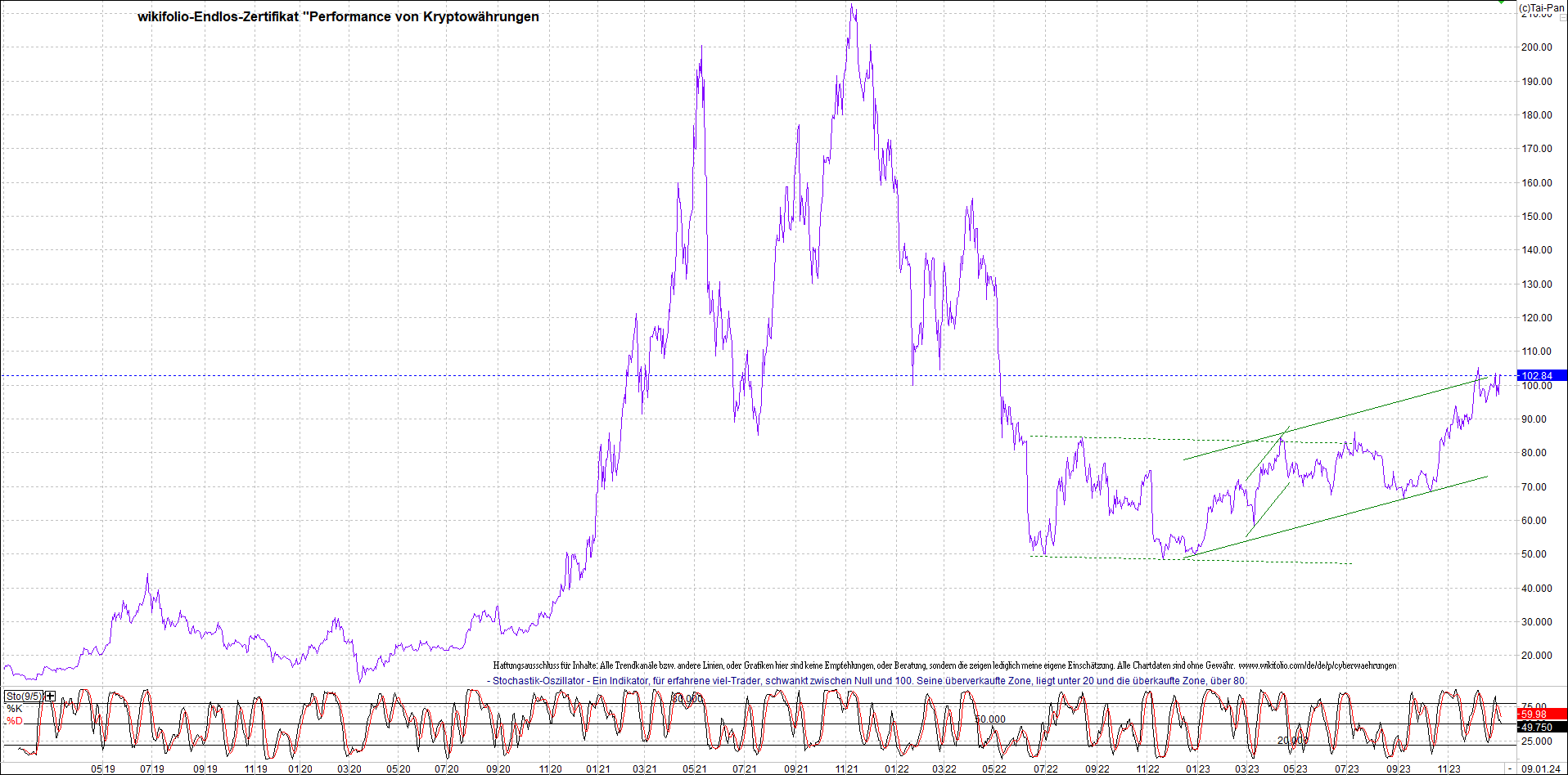 Zertifikat - Performance von Kryptowährungen.