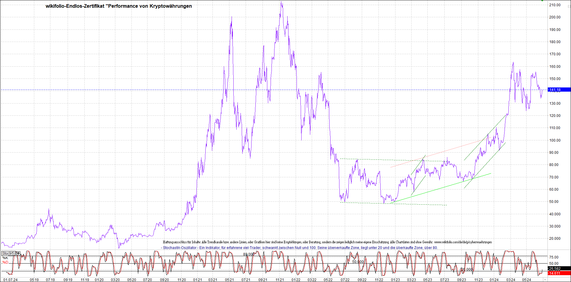 Zertifikat - Performance von Kryptowährungen.