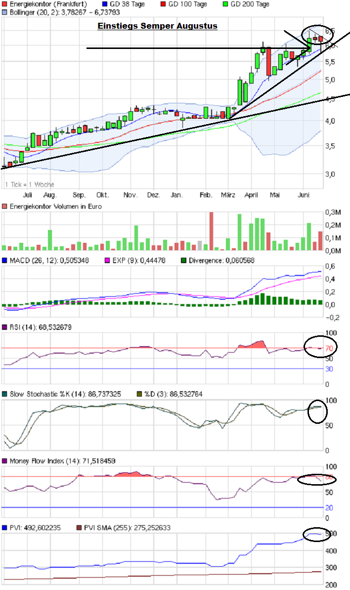 Du kannst ja gerne gegen EKT wetten wenn du so überzeugt bist, dass der Kurs sinkt! Aber ich vermute du wirst bei dem Chart keinen Leerverkauf eingehen, das Risiko eines Kursverlustes wäre hier ziemlich hoch.