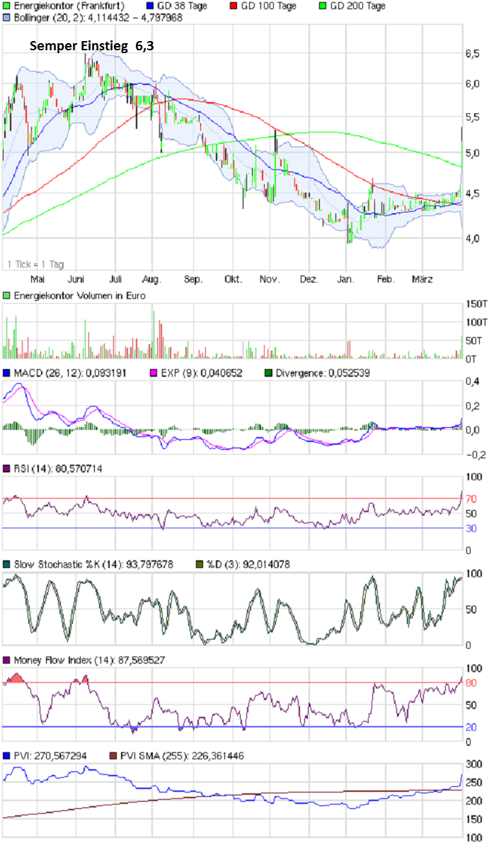 Energiekontor wird immer wenig gehandelt wegen des sehr geringen Freefloats deshalb war heute schon ein sehr starker Handelstag für die Aktie.