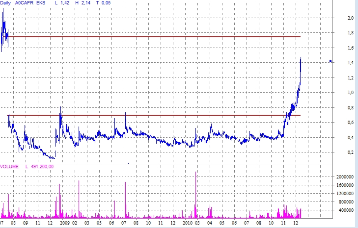 Namcor u. Partner Gazprom halten mittlerweile 54% an dem Kudu Gasfeld (Block 2814A). Nachgewiesene Reserven sind 1,4 TCF Gas. Das Potenzial dürfte jedoch um einiges höher liegen.