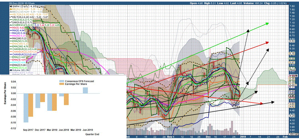 Hier haben wir nun das dritte Quartal 2018. Der Umsatz stagniert weiter im Bereich knapp unter 80 mio. Auch das EPS hätte ich stärker erwartet. Trotzdem ist man weiterhin auf einen sehr guten Weg positiv zu werden, die Insolvenz Gefahr aus 2017 ist nicht mehr gegeben. Für 2019 sieht es trotz Strafzöllen (man wird hier im 2 Quartal 19 nach Mexiko ausweichen) ausgezeichnet aus. Man sieht wie wichtig der "gekaufte" Umsatz von Sunpower sein wird (70-80 Mio zusätzlich 2019). Im Februar sollte man einen Umsatz deutlich über 80 Mio. melden und kommendes Jahr auf die 100 Mio pro Quartal steuern. Die zahlreichen Kooperationen (zuletzt Longi) werden sich ebenso positiv auswirken. Neue Produkte (IQ8, Batterien) sorgen für Innovation und für das 4. Quartal ist man nahezu "ausverkauft lt. Badri. Wir müssen schauen wie die Leerverkäufer jetzt handeln, ebenso die Analysteneinschätzungen sind wichtig. 2019 sieht wirklich extrem gut aus und der Kurs sollte sich deutlich nach oben bewegen.
