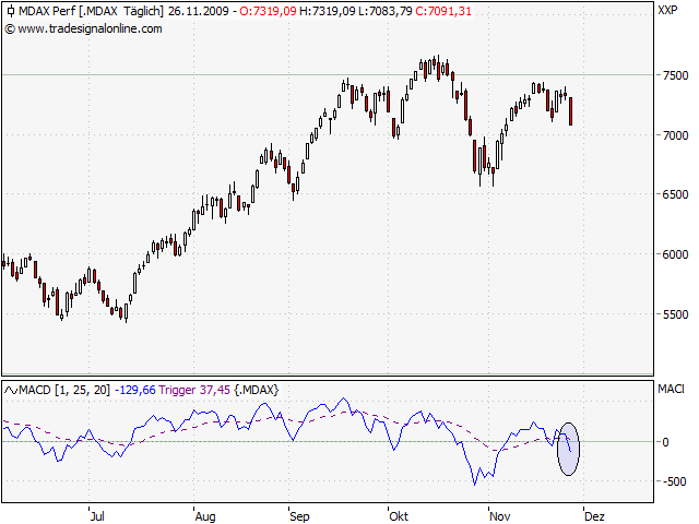 Das muß alles nicht so kommen, könnte es aber! Daher versuche ich ganz bewußt mehrere Ansätze zu verfolgen. Einer davon ist sicher der ganz langfristige, wie hier ja schon mehrfach angedeutet. Z.B. mit GDs bzw. MACD Ein anderer ist ein Ausbruchssystem, mit Price Channel, Bollinger etc. Wieder ein anderer geht auch in die Richtung kreuzender GDs im Bullenmarkt, also z.B. über GD 150 Nicht zu vergessen die Short-Seite. Man will ja schließlich auch versuchen im Abschwung etwas zu verdienen.... Ganz zum Schluß vielleicht noch der gaaanz kurzfristige Bereich. Muß aber nicht sein.