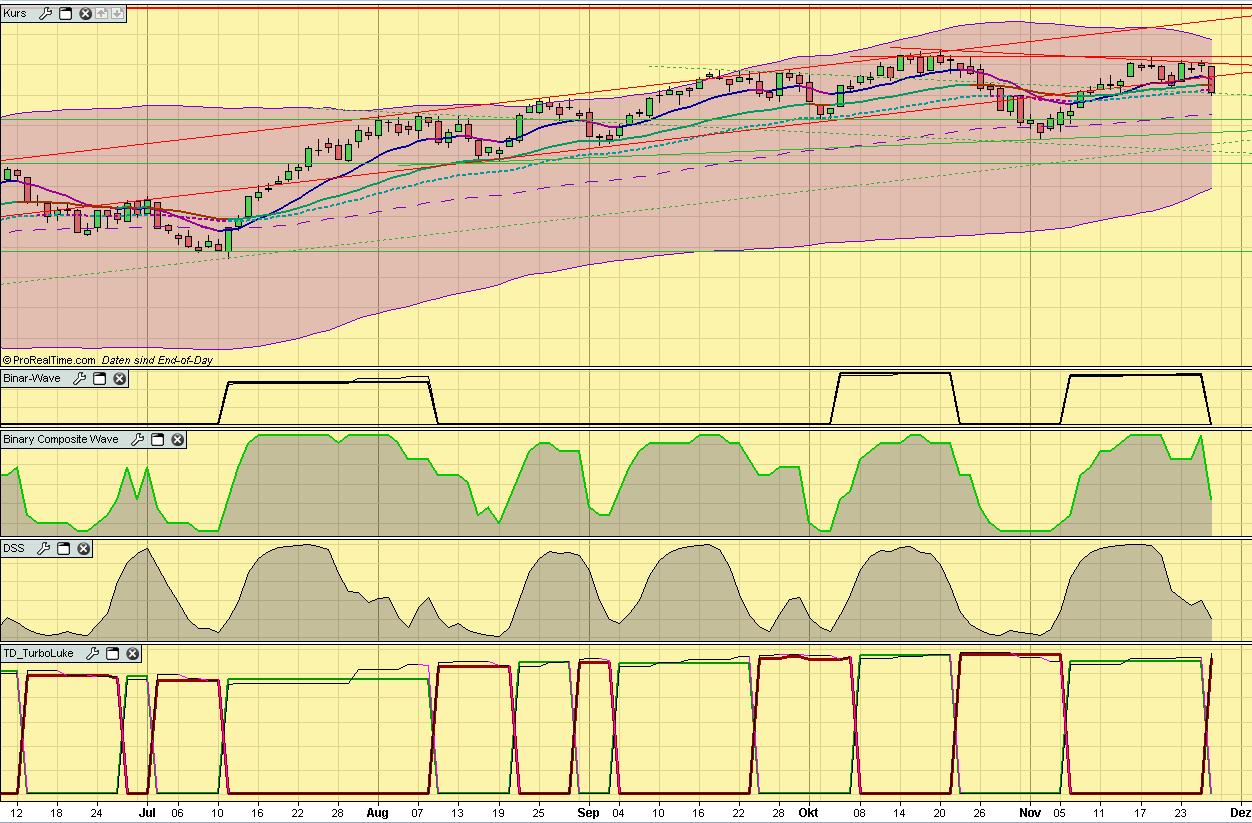 Beim letzten Swing wurde ein Einstieg am 6. November gemeldet, insgesamt bleibt ein + von knapp 200 Punkten im DAX.