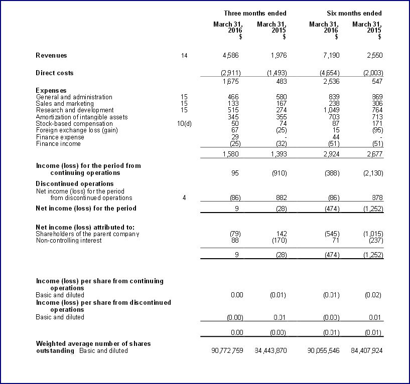www.commodity-tv.net/c/search_adv/?v=295748 ) berichtete heute die konsolidierten Zwischenfinanzergebnisse des Unternehmens für das 2. Quartal per Ende 31. März 2016. Das Unternehmen berichtete konsolidierte Einnahmen 4.586.000 $ und einen konsolidierten Nettogewinn aus fortlaufendem Betrieb von 95.000 $ für das 2. Quartal.