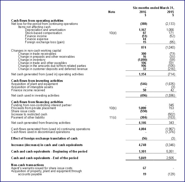 EnWave erzielte auch einen positiven Cashflow aus den Betriebsaktivitäten für die sechs Monate per Ende 31. März 2016 vor Änderungen des nicht Finanzmittel wirksamen Arbeitskapitals von 874.000 $.
