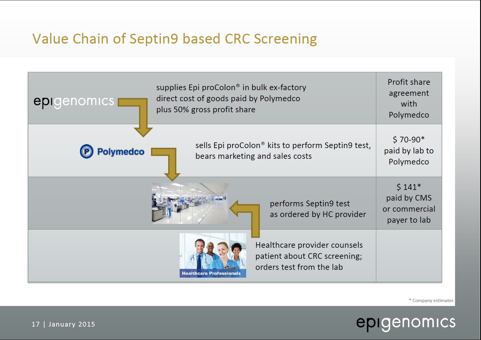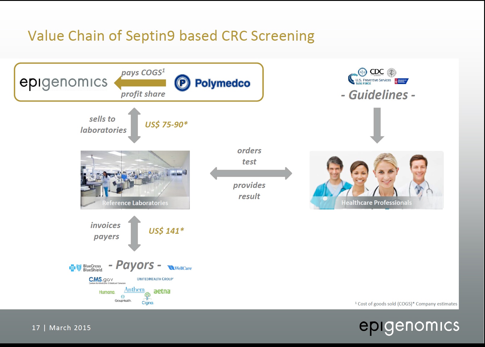 Nein. Noel Doheny, der damalige CEO of Epigenomics U.S.A., hat mir in 2016 erklärt: Wenn der Epitest positiv ist, muss eine Koloskopie zur Abklärung gemacht werden. Wird bei der Koloskopie nichts gefunden, ist der Patient nach den Guidelines für 10 Jahre raus aus dem Testsystem, denn er gilt ja als "screened". Er ist also für Epi als Kunde für 10 Jahre verloren, denn Epis Test nur für Screenverweigerer zugelassen. Und wenn was gefunden wurde (kommt drauf an was), muss er schon nach wenigen Jahren wieder zur Koloskopie (auch dann ist er für Epi als Kunde verloren).