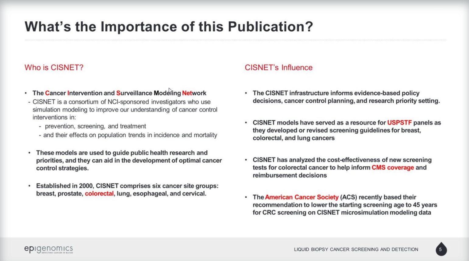 * Eine in der vergangenen Woche im Journal of the National Cancer Institute (JNCI) veröffentlichte Studie hat gezeigt, dass Epi proColon(R) der bevorzugte Test der zahlreichen Patienten ist, die nicht bereit sind, am Darmkrebs-Screening per FIT oder Darmspiegelung teilzunehmen. Ein jährliches Septin 9-Screening führte zu mehr gewonnenen qualitätsadjustierten Lebensjahren (Quality-adjusted-life-years gained, QALYG), mehr vermiedenen CRC-Fällen und mehr vermiedenen CRC-Todesfällen als ein jährliches FIT-sowie ein dreijährliches Screening mit dem Stuhltest Cologuard(R), wenn auch mit einer höheren Überweisungsrate zu Darmspiegelungen.