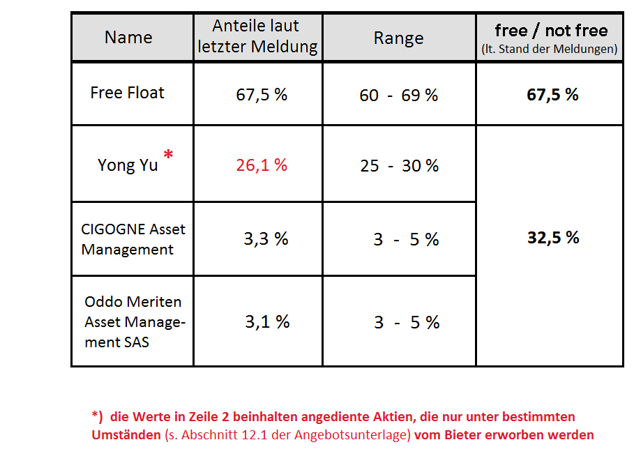 Ob die Mindestannahmequote von 67,5 % doch noch erreicht wurde, ist nicht bekannt. Wie viele Aktien